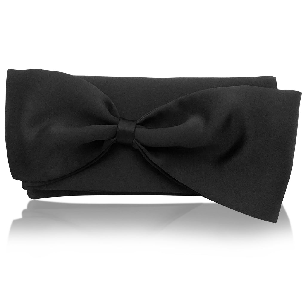 Black satin bow clutch handbag QUINN